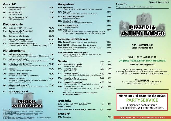 Lieferung Pizzataxi täglich (außer Montag) von 17.30 - 22.00 Uhr