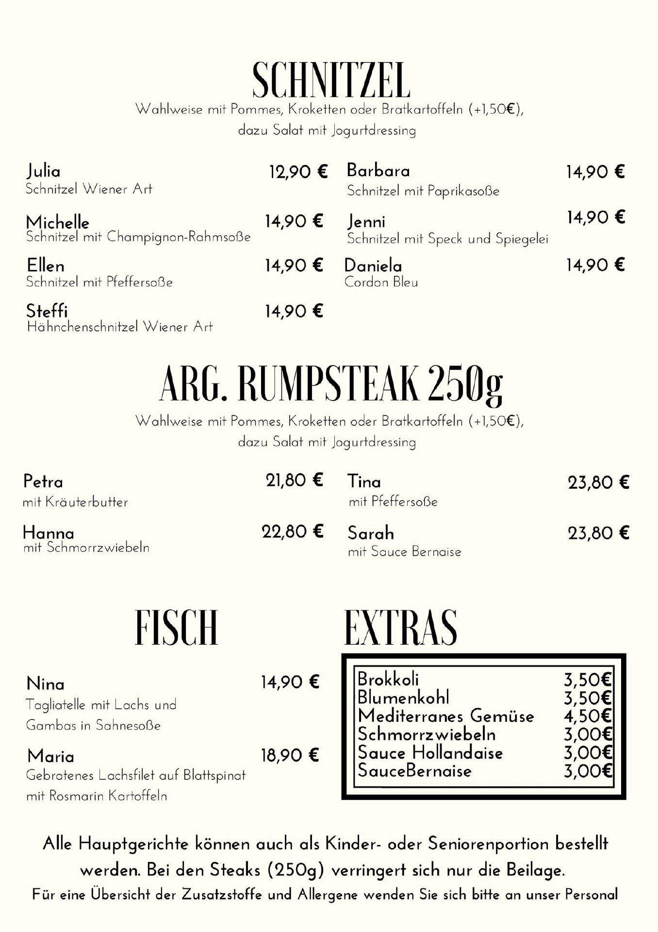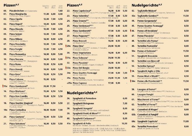 Lieferservice/ Speisekarten